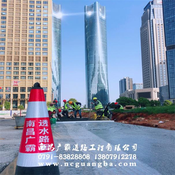 南昌廣霸道路工程廣霸透水混凝土具有高透水性,在C25強度上,真正達到15%-20%的透水率,有效避免地面積水反光的威脅。